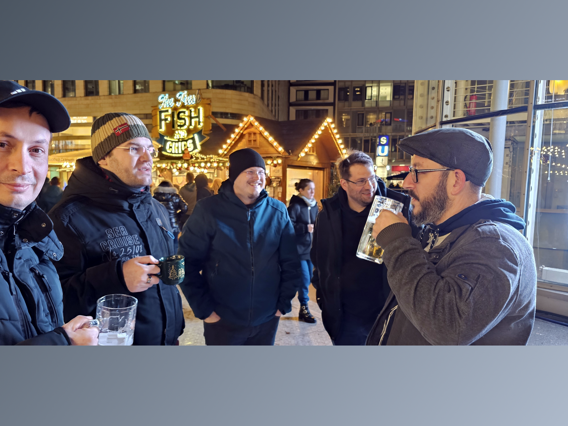 Zum Jahresabschluss haben wir gemeinsam ein unvergessliches Erlebnis gehabt: Unser Team besuchte einen Escape-Room in Frankfurt, erkundete den Weihnachtsmarkt und genoss ein hervorragendes Abendessen in einem spanischen Restaurant. Die entspannte Hotelübernachtung rundete unseren Jahresabschluss perfekt ab und gab uns die Gelegenheit, das Jahr in entspannter Atmosphäre ausklingen zu lassen.
